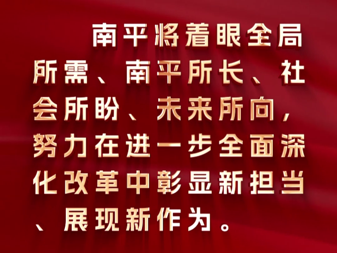 南平將著眼全局所需、南平所長、社會所盼、未來所向,努力在進(jìn)一步全面深化改革中彰顯新?lián)?dāng)、展現(xiàn)新作為。