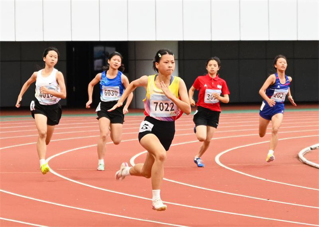 女子乙組200米比賽,運(yùn)動員們你追我趕。