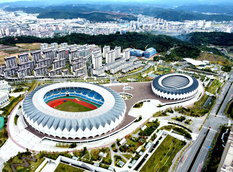 南平市第五屆運(yùn)動會開幕式將于10月25日晚在南平市體育中心舉行。開幕式上將舉行精彩的文藝演出,分為《龍騰大武夷》《百舸爭流》 《奮楫爭先》《@·南平》《奔向幸福》等五個篇章。作為南平市重要的體育盛事之一,本屆運(yùn)動會由南平市人民政府主辦,南平市體育局、各縣(市、區(qū))人民政府承辦,設(shè)青少年部、行業(yè)部、群眾部等41個大項(xiàng),吸引10個縣(市、區(qū))、武夷新區(qū)管委會及27個行業(yè)代表團(tuán)約4000人參加。圖為近日拍攝的南平市體育中心外景。 (鄭金富 黃杰敏 攝)