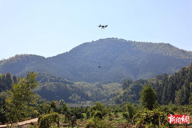 11月6日,南平市農(nóng)業(yè)機械化發(fā)展中心在順昌縣開展果樹新機具新技術試點推廣活動,省、市、各縣(市、區(qū))農(nóng)機部門相關負責人、合作社和種植大戶代表等60余人參加。 活動現(xiàn)場演示了遙控軌道運輸機、植保無人機、遙控噴霧機、水肥一體化機等一系列果樹新機具使用方法,針對柑橘種植耕整、施肥、植保、采收、運輸、管理技術等方面的薄弱環(huán)節(jié),通過現(xiàn)場解答、規(guī)范演示、交流互動等形式,讓大家對果樹新機具新技術有了更全面的認識。圖為無人機運輸柑橘。 (徐華山 攝)