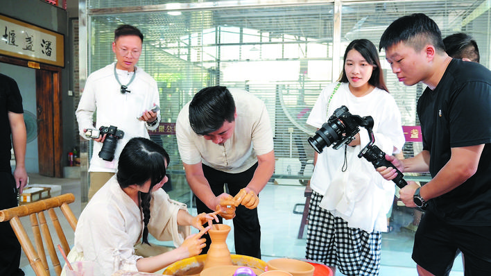 “網(wǎng)絡(luò)名人看武夷”活動(dòng)中,網(wǎng)絡(luò)達(dá)人們正在體驗(yàn)建盞制作技藝。