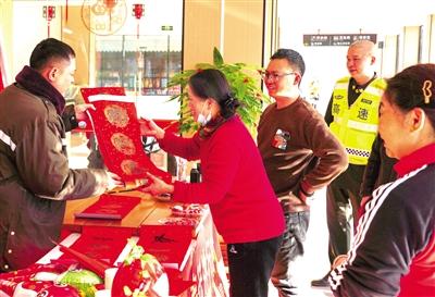 14日,春運(yùn)首日,南平高速光澤管理中心攜手光澤縣書法家協(xié)會(huì)開展志愿服務(wù)活動(dòng)。志愿者們變身“送福使者”,熱情地為過往司乘人員送上“福”字、對(duì)聯(lián)等新年禮物。 (何守斌 羅光耀 攝)