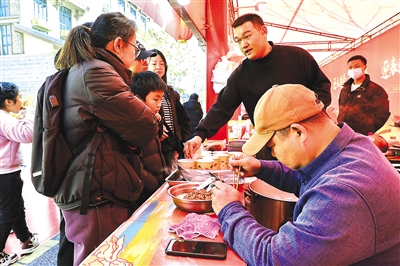 各個(gè)展位上,特色年貨、傳統(tǒng)小吃、美味佳肴讓人目不暇接。空氣中彌漫著各種美食的香氣,讓人垂涎欲滴。攤主們熱情地向過往市民介紹著自己的商品,有的還示范制作過程,吸引不少人體驗(yàn)、品嘗。