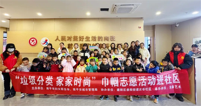 為推進(jìn)垃圾分類工作在南平市的實(shí)施,全面提升轄區(qū)內(nèi)居民環(huán)保意識,倡導(dǎo)綠色生態(tài)、健康環(huán)保的生活方式。近日,南平市婦女聯(lián)合會、建陽區(qū)崇陽街道云谷社區(qū)聯(lián)合開展“垃圾分類·家家時尚”巾幗志愿活動進(jìn)社區(qū)活動。為持續(xù)鞏固文明城市創(chuàng)建成果,切實(shí)發(fā)揮廣大巾幗志愿者在基層治理中的獨(dú)特作用,提高廣大婦女兒童及家庭的環(huán)保意識,營造垃圾分類、節(jié)能環(huán)保的濃厚氛圍,南平市婦女聯(lián)合會、南平市城市管理局以元旦和春節(jié)為契機(jī)啟動“垃圾分類·家家時尚”巾幗志愿服務(wù)專項行動兩節(jié)期間系列活動。近日,系列活動第二場走進(jìn)云谷社區(qū),活動由建陽區(qū)婦聯(lián)、建陽區(qū)崇陽街道云谷社區(qū)和南平市婦女兒童活動中心聯(lián)合協(xié)辦。