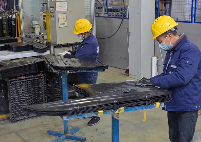 6日,在武夷新區(qū)福建海源新材料科技有限公司車間,工人對(duì)汽車底護(hù)板進(jìn)行修邊。該公司主要從事玻璃纖維、碳纖維等復(fù)合材料汽車輕量化制品的研發(fā)、生產(chǎn)和銷售,是目前國(guó)內(nèi)唯一一家具備多種復(fù)合材料輕量化工藝研發(fā)及制造能力的企業(yè)。正月初五,企業(yè)正式復(fù)工,各生產(chǎn)線滿負(fù)荷運(yùn)轉(zhuǎn)趕訂單。 (羅光耀 攝)