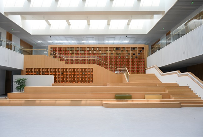 針對青少年兒童的閱讀需求和習(xí)慣,館區(qū)一樓和負(fù)一樓分別打造了青少年閱讀區(qū)和親子閱讀區(qū)域。面向8至16周歲的青少年閱讀區(qū)引進(jìn)了分級閱讀系統(tǒng),配套AR增強導(dǎo)讀等數(shù)字化手段,幫助讀者更好地消化、吸收書本內(nèi)容。親子閱讀區(qū)在重視兒童安全和色彩搭配的基礎(chǔ)上,特別打造了繪本閱讀區(qū),小讀者們可以通過少兒繪本學(xué)習(xí)機的投影動畫、音頻解讀等,沉浸在繪本故事中。
