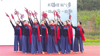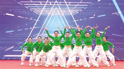 頒獎(jiǎng)典禮現(xiàn)場,《鼓舞歡歌》《茶歡》等暖場節(jié)目迅速點(diǎn)燃觀眾熱情。優(yōu)秀參賽作品展演環(huán)節(jié)將現(xiàn)場氣氛推向高潮,有的將現(xiàn)代健身操與傳統(tǒng)民間舞蹈元素相結(jié)合,展現(xiàn)出獨(dú)特的藝術(shù)魅力;有的則融入當(dāng)?shù)氐奶厣魳泛偷谰?,生?dòng)地描繪出鄉(xiāng)村生活的美好畫卷。