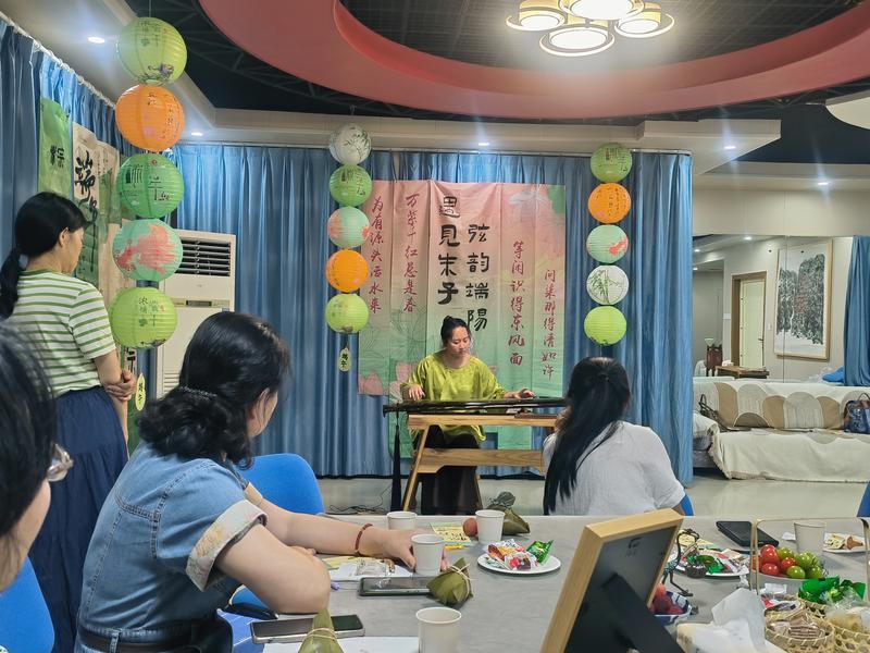 5月30日,延城部分古琴愛(ài)好者齊聚一堂,舉行了一場(chǎng)以“遇見(jiàn)朱子 弦韻端陽(yáng)”為主題的雅集。大家體驗(yàn)了沐蘭湯、點(diǎn)雄黃、制香包等端午傳統(tǒng)習(xí)俗,并在艾草香里傾聽(tīng)悠悠古琴聲。圖為南平市朱子古琴藝術(shù)非遺傳承人在彈奏。 (卓茹茵 攝)