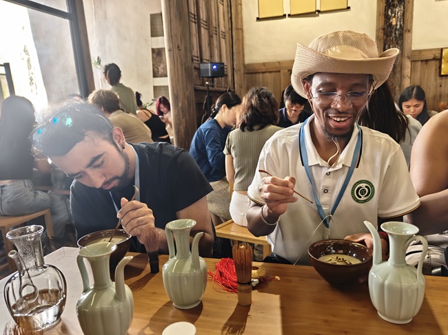 研習(xí)營(yíng)營(yíng)員走進(jìn)建甌,體驗(yàn)宋式點(diǎn)茶技藝。 (朱宇 張行健 攝)
