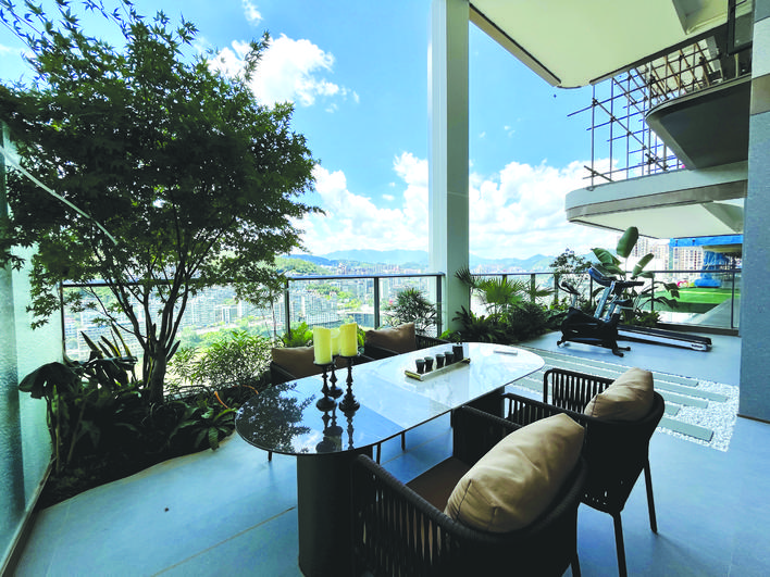 “第四代住宅”每戶標配的空中花園緊鄰客廳或臥室,可以變身為露天會客廳、陽光花房或星空茶室。與傳統(tǒng)住宅相比,該項目236平方米的樣板間贈送的雙露臺面積達90平方米,加上獨立前室,贈送率達45%以上,住宅空間利用率實現(xiàn)質(zhì)的飛躍。