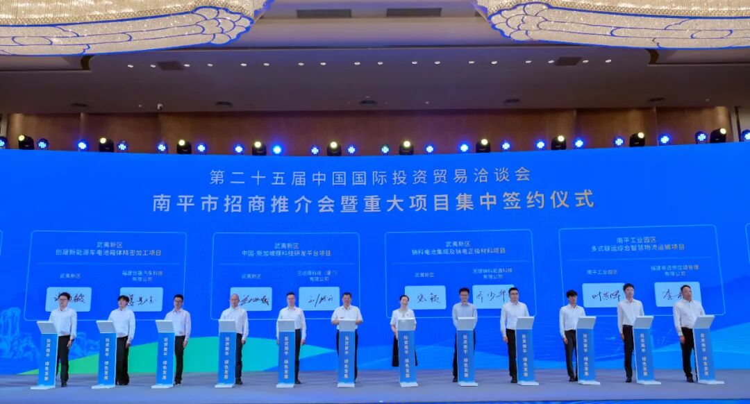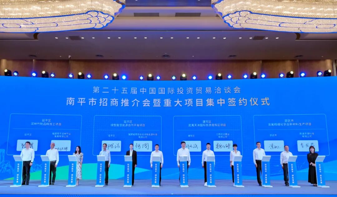 當(dāng)天,借助投洽會(huì)平臺(tái),南平市招商推介會(huì)暨重大項(xiàng)目集中簽約活動(dòng)舉行。林建與中國(guó)供銷(xiāo)集團(tuán)有限公司黨委委員、副董事長(zhǎng),中國(guó)農(nóng)業(yè)生產(chǎn)資料集團(tuán)有限公司黨委書(shū)記、董事長(zhǎng)郝彥領(lǐng)參加并見(jiàn)證項(xiàng)目簽約。市委常委、副市長(zhǎng)何明星致辭。副市長(zhǎng)魏敦盛,香港福建同鄉(xiāng)會(huì)副會(huì)長(zhǎng)洪俊偉,阿聯(lián)酋國(guó)際投資峰會(huì)、AIM全球基金會(huì)大中華區(qū)首席代表賈柳夏參加活動(dòng)。市科技局、武夷新區(qū)、市工信局、武夷旅游集團(tuán)分別作新型電池、水(食品)、竹和文旅康養(yǎng)等重點(diǎn)產(chǎn)業(yè)推介。