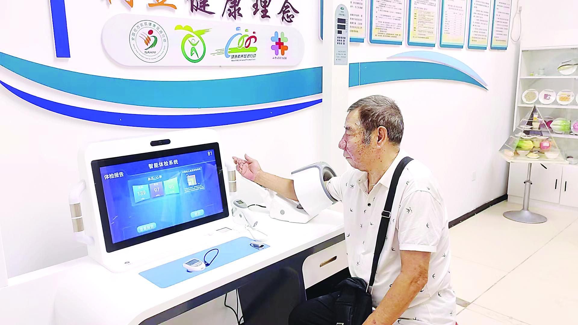 在建陽區(qū)潭城街道社區(qū)衛(wèi)生服務(wù)中心,群眾通過自助體檢設(shè)備兌換健康積分,并將積分累積至“健康銀行”。(潭城街道社區(qū)衛(wèi)生服務(wù)中心供圖)