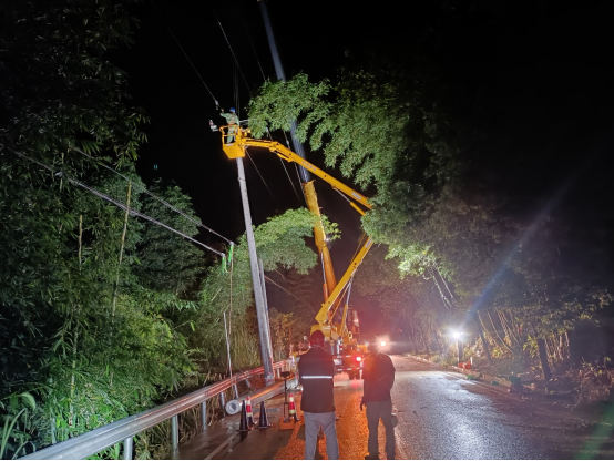 夜幕降臨,數(shù)盞應(yīng)急燈將現(xiàn)場(chǎng)照得如同白晝。高空作業(yè)人員系緊安全繩專注操作,地面人員默契傳遞工具,安全員緊盯每一個(gè)作業(yè)細(xì)節(jié),多工種高效聯(lián)動(dòng)形成強(qiáng)大合力。經(jīng)過(guò)近四小時(shí)緊張奮戰(zhàn),受損電桿加固與線路檢修工作順利完成。22時(shí)30分,送電指令下達(dá),10千伏斜溪線成功恢復(fù)供電,周邊用戶家中的電表重新亮起溫暖燈光。