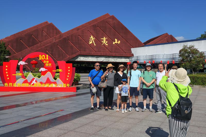 中秋月漸圓,國慶意更濃。近期,我市各地提前謀劃、細致部署,從環(huán)境裝扮到安全保障,從文化活動到優(yōu)化服務(wù),全方位打造歡樂祥和的節(jié)日場景。圖為游人在武夷山國家公園景區(qū)南路口廣場的歡度國慶主題雕塑前留影。 (邱汝泉 攝)