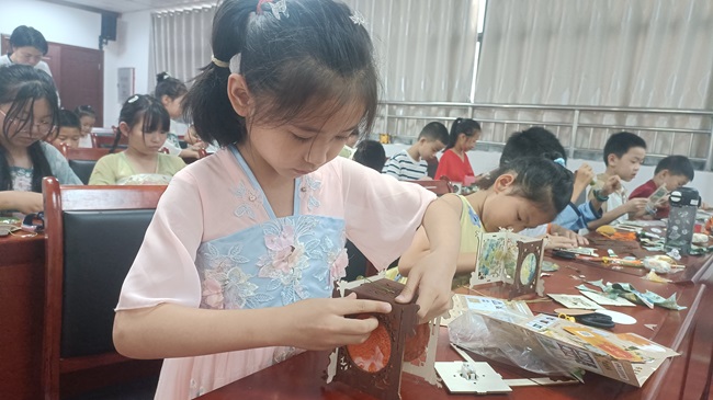 活動(dòng)伊始,博物館工作人員借助PPT課件,生動(dòng)講解了中秋節(jié)的起源、習(xí)俗演變、經(jīng)典古詩詞及相關(guān)神話傳說,從“嫦娥奔月”到“中秋賞月”,從古代祭月儀式到現(xiàn)代中秋團(tuán)圓習(xí)俗,讓孩子們對(duì)這一傳統(tǒng)節(jié)日的文化內(nèi)涵有了更深入的認(rèn)知。隨后,宮燈制作環(huán)節(jié)正式開啟。工作人員詳細(xì)演示了宮燈制作的步驟與注意事項(xiàng),從框架拼接的角度對(duì)齊,到燈面粘貼的平整技巧,再到掛飾安裝的細(xì)節(jié)處理,逐一耐心指導(dǎo)。孩子們領(lǐng)取材料包后,紛紛動(dòng)手實(shí)踐,起初動(dòng)作生疏,在工作人員的幫助和同伴的交流中逐漸熟練,將零散的材料一步步組裝成色彩鮮艷、造型別致的宮燈。當(dāng)親手制作的宮燈完成時(shí),孩子們臉上滿是成就感,現(xiàn)場(chǎng)洋溢著歡樂的氛圍。