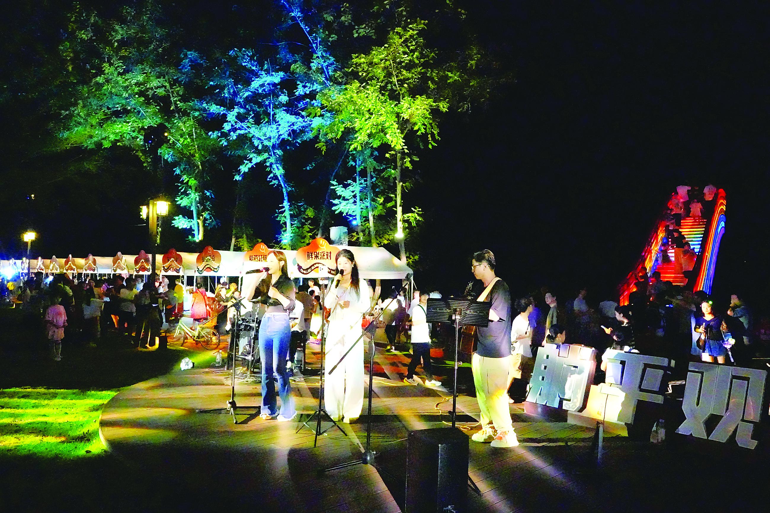 2日,在武夷山度假區(qū)崇陽(yáng)溪畔的躺平觀山公園,游人正在欣賞樂(lè)隊(duì)表演。國(guó)慶中秋假期,武夷山以“月滿河山 家國(guó)同慶”為主題舉辦系列活動(dòng),通過(guò)業(yè)態(tài)融合、民謠演繹、非遺展示和特色美食,為游客獻(xiàn)上一場(chǎng)節(jié)日盛宴。(林李冰 攝)