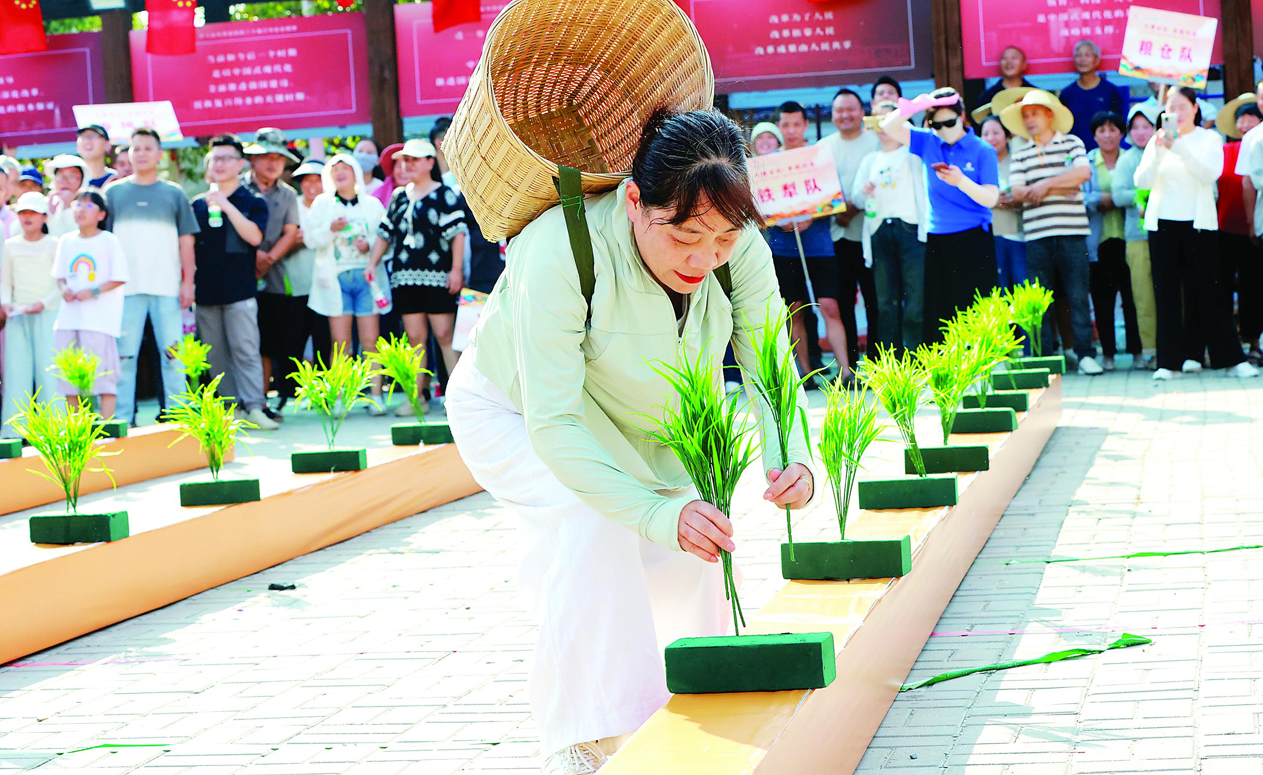 農(nóng)趣賽中,剝玉米、抓鴨子、拔河、插秧等源自田間地頭的競技項目被搬上鄉(xiāng)村大舞臺,農(nóng)耕場景轉(zhuǎn)化為趣味賽場,游客與村民同場競技,在汗水與笑聲中共享豐收喜悅。