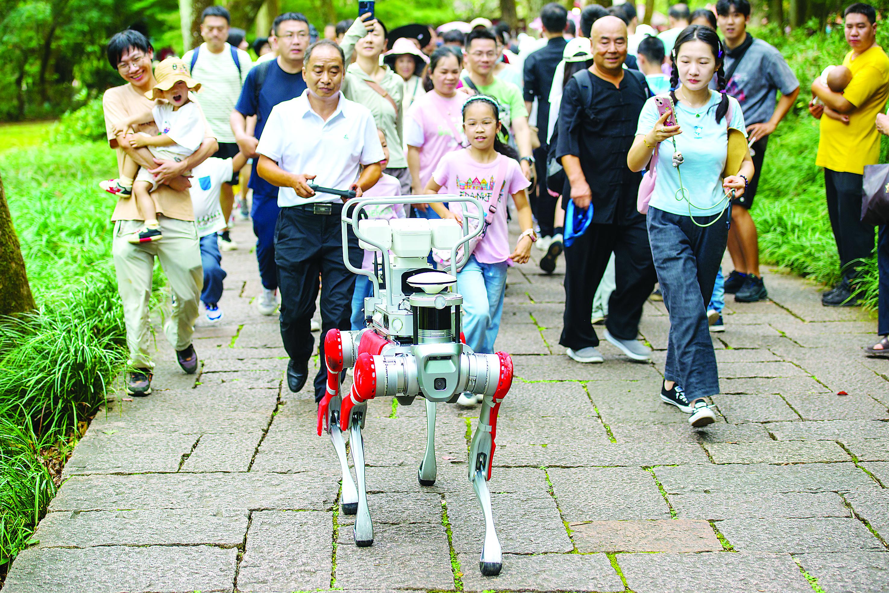 在武夷山景區(qū),機器狗參與巡邏,與游人互動。(張筱惜 彭善安 攝)