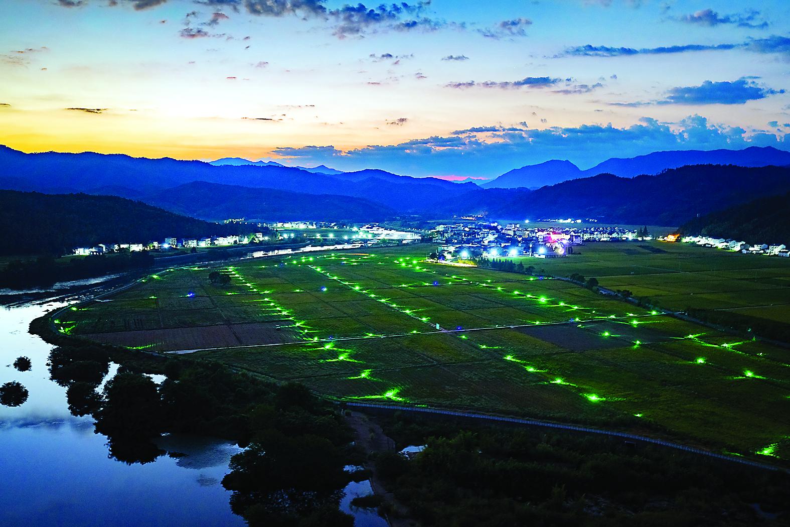 11日晚,建陽(yáng)區(qū)麻沙鎮(zhèn)長(zhǎng)坪村的千畝稻田星光點(diǎn)點(diǎn),景色浪漫,眾多稻飛虱干擾儀形成一片燈海,在田間熠熠生輝。2025年,建陽(yáng)區(qū)在麻沙長(zhǎng)坪、莒口馬伏建設(shè)水稻“生物防控+”試驗(yàn)推廣項(xiàng)目示范區(qū),推廣應(yīng)用稻飛虱干擾儀,抑制稻飛虱數(shù)量,提升區(qū)域病蟲害綠色防控能力。(陳琦輝 溫良英 攝)