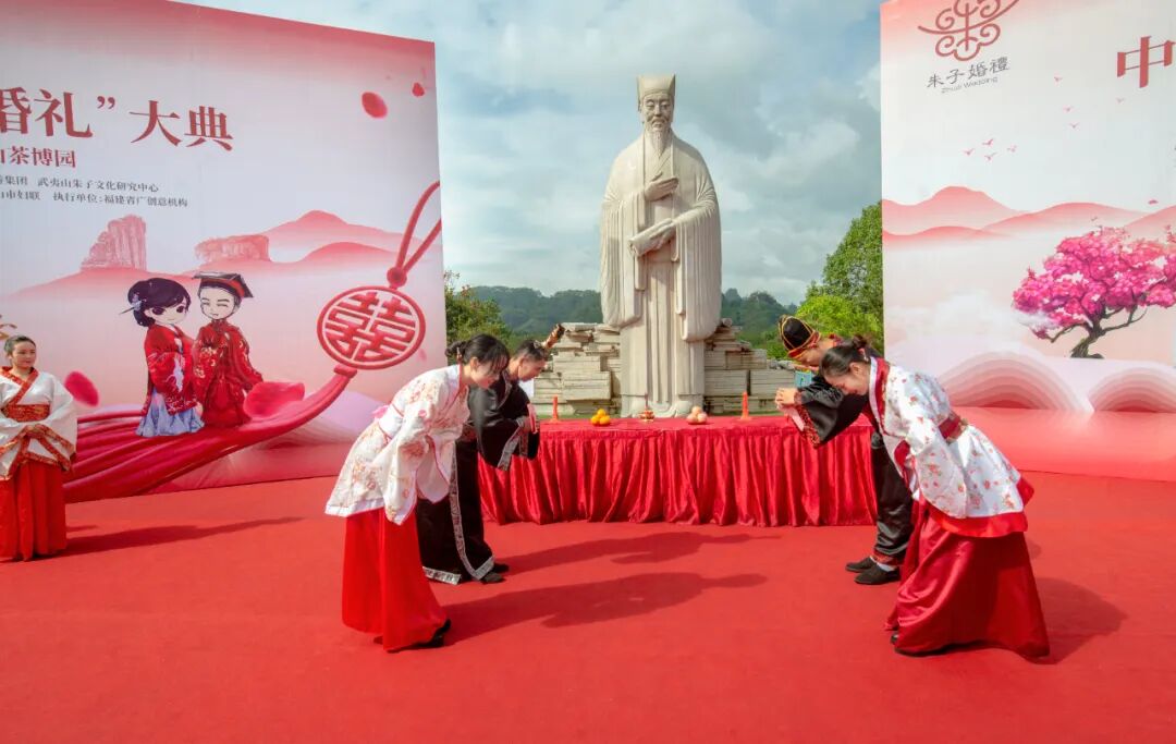 如今,在古卷與當(dāng)代的對(duì)話中,朱子文化如春風(fēng)化雨,浸潤(rùn)著人們的生活——隱屏峰下跫音不絕,武夷精舍迎來(lái)一批又一批朝圣的游人;九曲溪畔棹歌聲聲,茶灶石的余音在摩崖石刻間縈繞;五夫古鎮(zhèn)群芳爭(zhēng)艷,興賢古街與文公廟交相輝映;“朱子家宴”讓孝道理念可觀可品,帶動(dòng)著地方特產(chǎn)的發(fā)展;《月映武夷》劇場(chǎng)成為“活著的”研學(xué)課堂,讓觀眾參悟朱子智慧;“朱子婚禮”涵養(yǎng)文明新風(fēng),也串聯(lián)文旅驗(yàn)新場(chǎng)景。