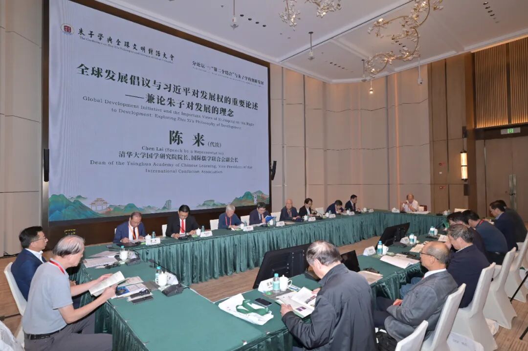 論壇現(xiàn)場,主持人代讀了清華大學(xué)國學(xué)研究院院長、國際儒聯(lián)執(zhí)委會(huì)副會(huì)長陳來教授的發(fā)言《全球發(fā)展倡議與習(xí)近平對發(fā)展權(quán)的重要論述——兼論朱子對發(fā)展的理念》,華東師范大學(xué)古籍所教授朱杰人、北京師范大學(xué)學(xué)術(shù)委員會(huì)主任韓震、中國人民大學(xué)哲學(xué)院教授臧峰宇、韓國成均館大學(xué)終身教授崔英辰等18位專家學(xué)者分別結(jié)合各自深耕的專業(yè)領(lǐng)域,從思想根源出發(fā),向理論深處掘進(jìn),展開了富有前瞻性、創(chuàng)新性、學(xué)理性的交流研討。