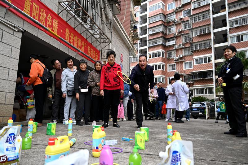 24日,延平區(qū)梅山街道超驤社區(qū)開展“重陽秋色暖·敬老情更濃”系列活動(dòng),居民們積極參加套圈、投球等游戲,享受快樂時(shí)光?,F(xiàn)場(chǎng),來自南平市人民醫(yī)院急診科的醫(yī)護(hù)人員還為居民提供健康義診。 (盧國華 攝)