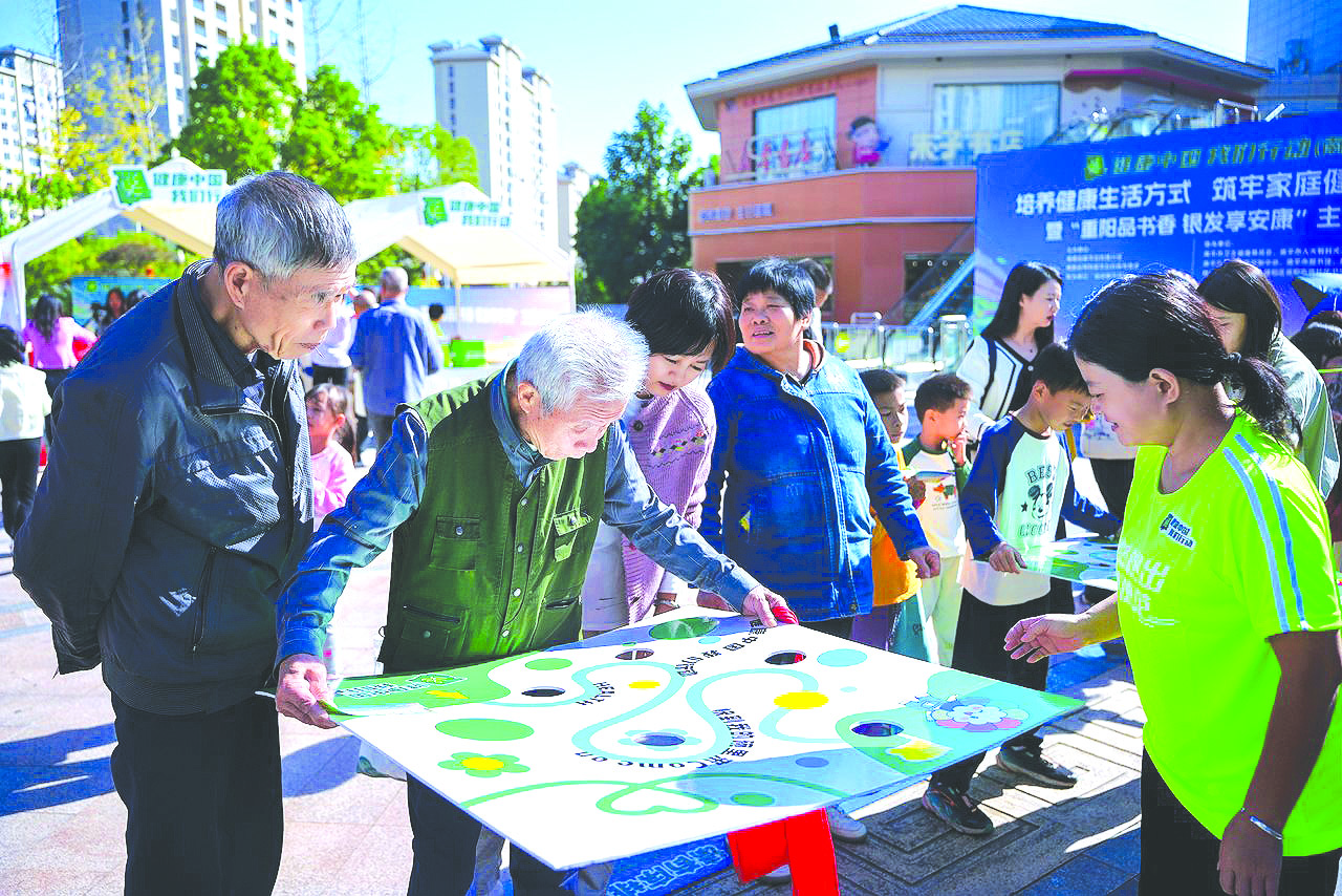 安利志愿者通過游戲的方式宣傳健康知識(shí)