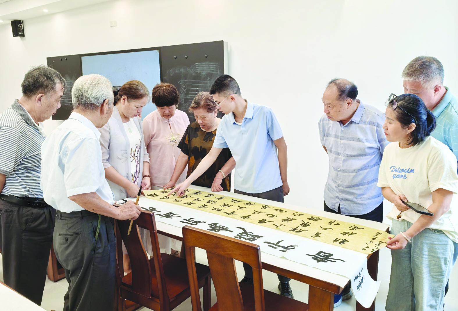 福建省書協(xié)會員、南平青年書法家夏浩南正在給離退休老干部上書法課。 (王丹紅 攝)