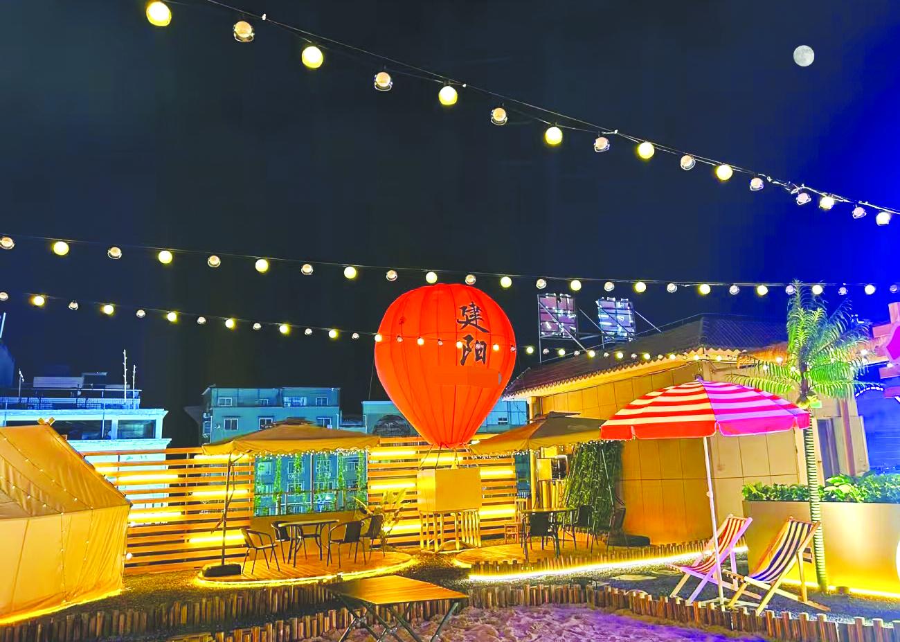 不過(guò),傳統(tǒng)的露營(yíng)地基本都在郊區(qū)或者更遠(yuǎn)的山林,需要奔波的路途、耗費(fèi)的時(shí)間,讓不少渴望露營(yíng)的人望而卻步。為迎合消費(fèi)者對(duì)戶外空間的渴望,閩北很多餐飲企業(yè)也嗅到了其中的商機(jī),紛紛將戶外露營(yíng)與餐飲結(jié)合起來(lái)。商家們瞄準(zhǔn)露營(yíng)風(fēng)格的裝修,在喧囂的城區(qū)中努力營(yíng)造“降噪”的治愈環(huán)境。特色露營(yíng)餐廳、燒烤店、小酒館、小茶館等不斷涌現(xiàn),那些錯(cuò)落著帳篷、點(diǎn)綴著燈帶的精致場(chǎng)地,不僅便于消費(fèi)者沉浸式感受氛圍,更成了市民游客爭(zhēng)相打卡的地方,為城市消費(fèi)注入新活力。