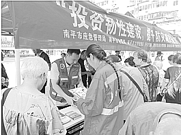 活動(dòng)現(xiàn)場,工作人員通過懸掛宣傳橫幅,發(fā)放地震、洪水、火災(zāi)、用氣安全等知識(shí)手冊(cè),結(jié)合現(xiàn)場講解與咨詢等方式,全方位普及地震安全、洪澇災(zāi)害預(yù)防、防火常識(shí)及居家自救、巨災(zāi)保險(xiǎn)制度等安全知識(shí)。各單位通過面對(duì)面交流,為市民生動(dòng)呈現(xiàn)了一堂“防災(zāi)減災(zāi)救災(zāi)常識(shí)課”。