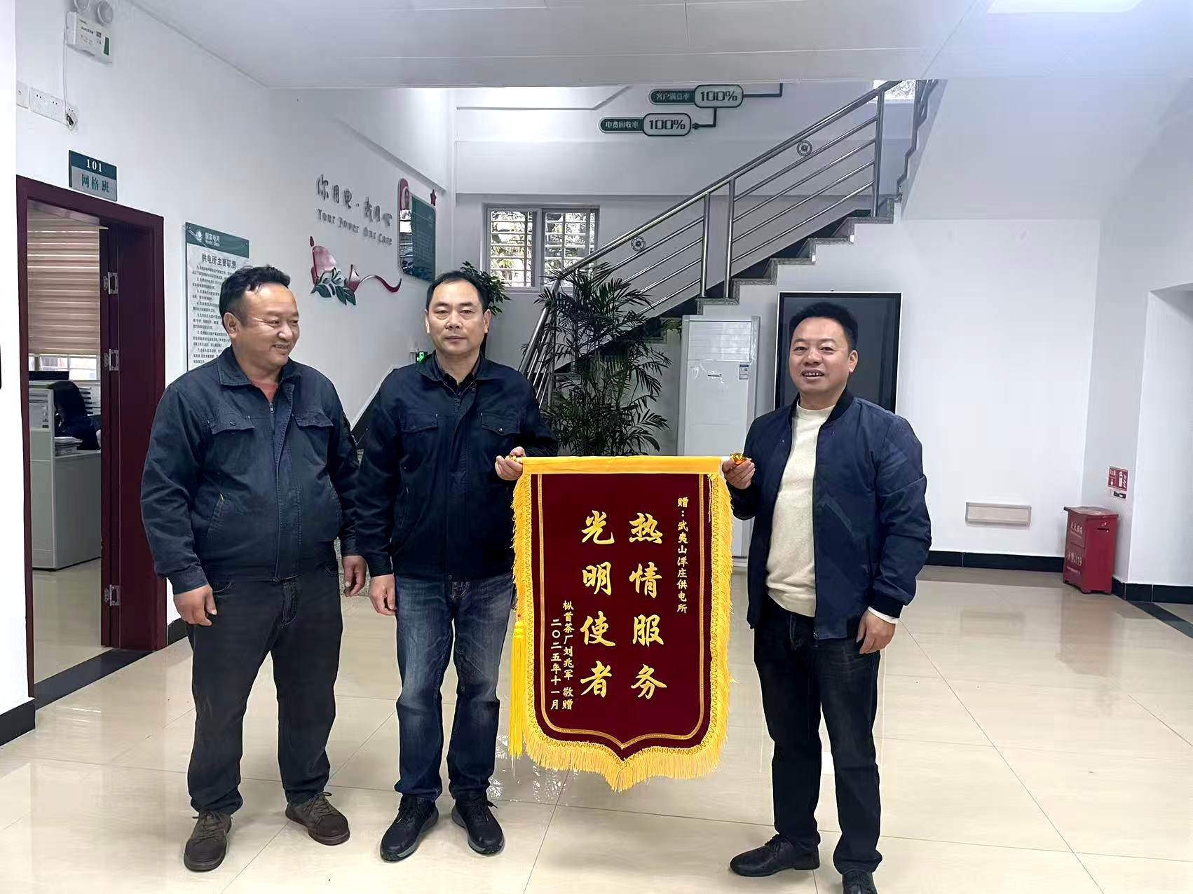 11月4日,武夷山市樅首茶廠劉廠長一行專程來到國網(wǎng)武夷山市供電公司洋莊供電所,將一面飽含感激的錦旗送到工作人員手中,以表達(dá)制茶季期間供電所提供優(yōu)質(zhì)電力服務(wù)的誠摯謝意。