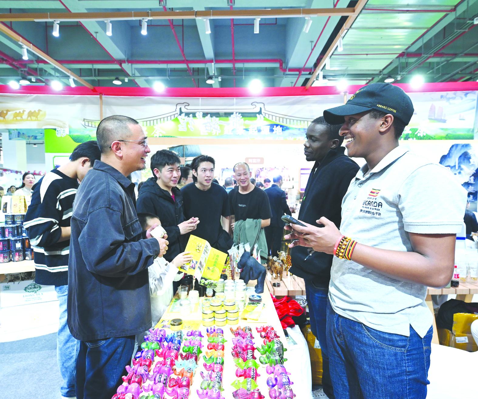 市民游客在“一帶一路”館了解各地特色產(chǎn)品