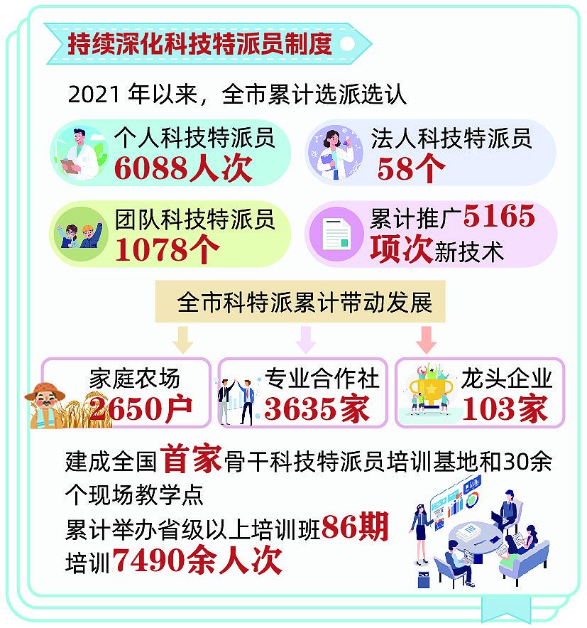 “十四五”期間,南平市著力深化科技特派員制度,探索建立科技特派員、科技小院責(zé)任專家、農(nóng)技推廣人員“三支力量”融合新機(jī)制,構(gòu)建以科特派專家團(tuán)隊(duì)為引領(lǐng)、以科技小院為創(chuàng)新載體、以農(nóng)業(yè)科技推廣網(wǎng)絡(luò)為基礎(chǔ)的“三位一體”新型農(nóng)業(yè)科技服務(wù)體系。2024年,南平市“深入推進(jìn)科技特派員制度創(chuàng)新發(fā)展”獲評(píng)中國(guó)改革年度市域改革案例,成為全國(guó)示范樣本。