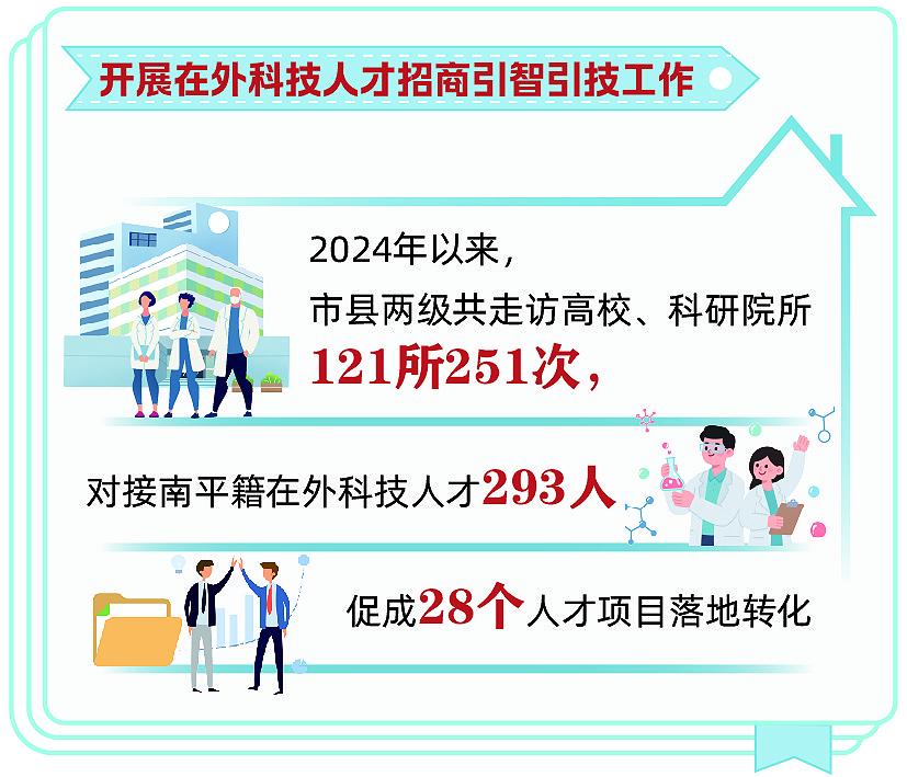 去年以來(lái),我市創(chuàng)新開(kāi)展南平籍在外科技人才招商引智引技工作,建立“南平優(yōu)質(zhì)資源+專家優(yōu)秀成果+營(yíng)造優(yōu)越環(huán)境”聯(lián)動(dòng)機(jī)制,強(qiáng)化人才、產(chǎn)業(yè)精準(zhǔn)對(duì)接合作。截至目前,市縣兩級(jí)共走訪高校、科研院所121所251次,對(duì)接南平籍在外科技人才293人,促成28個(gè)人才項(xiàng)目落地轉(zhuǎn)化。