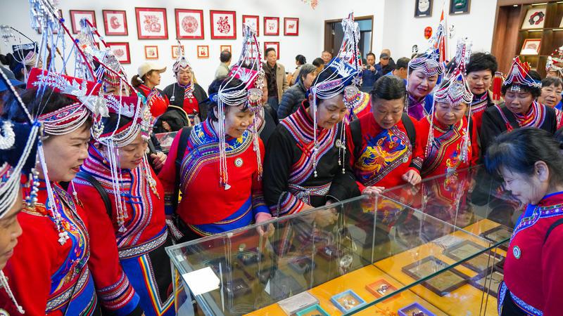 麗水老年大學(xué)學(xué)員在南平老年大學(xué)手工藝品展廳參觀。 (陳子昕 陳靖 攝)