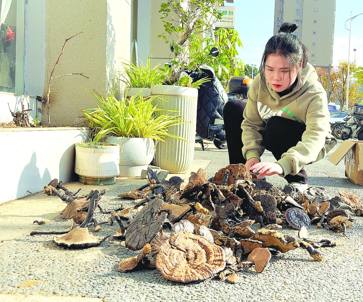 陳建珍在清理自己剛收購來的靈芝
