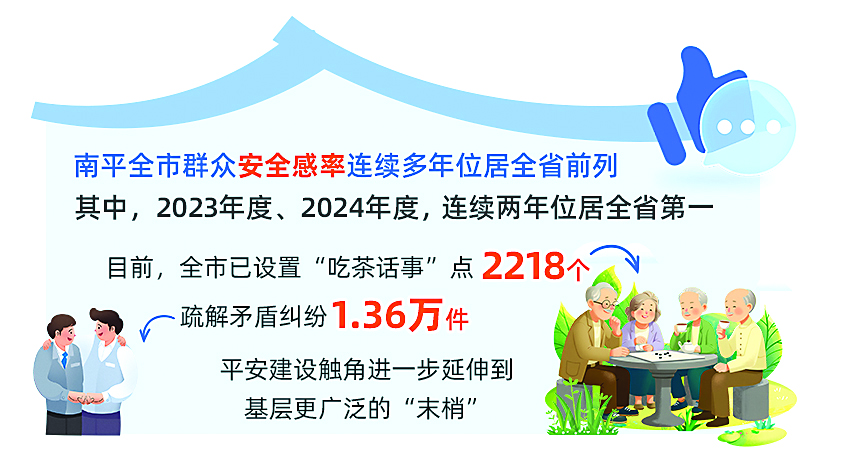 以善治回應(yīng)時(shí)代之問(wèn),讓城市溫度可知可感。“十四五”期間,南平市聚焦社會(huì)治理的難點(diǎn)、痛點(diǎn)、堵點(diǎn),在黨建引領(lǐng)基層治理、加強(qiáng)各類(lèi)風(fēng)險(xiǎn)防范、扎實(shí)推進(jìn)安全生產(chǎn)等領(lǐng)域,推動(dòng)了一系列創(chuàng)新性工作與深層次改革,特別是持續(xù)深化“吃茶話(huà)事”等“四個(gè)一”基層社會(huì)治理,健全完善“一庫(kù)三單”閉環(huán)管理,全面推行“黨建體檢”“安全體檢”、片區(qū)聯(lián)合執(zhí)法等,有效激發(fā)了社會(huì)各界的參與活力,催生了共建共治共享的內(nèi)生動(dòng)力,提升了全市應(yīng)對(duì)各類(lèi)風(fēng)險(xiǎn)挑戰(zhàn)的綜合能力,為建設(shè)更高水平的平安南平、法治南平探索了新路。