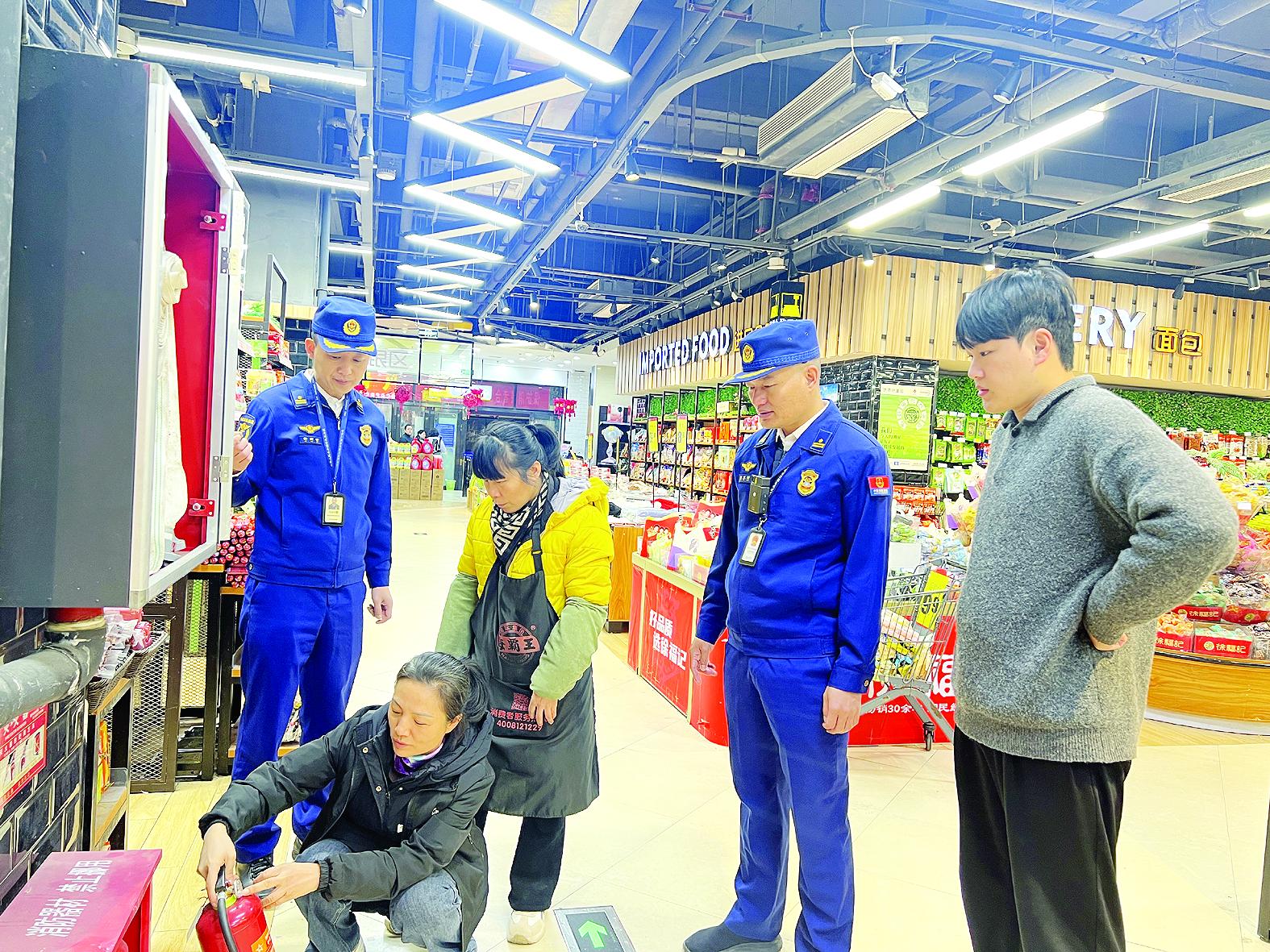 近日,邵武市消防救援大隊到轄區(qū)人員密集場所開展消防安全隱患檢查,重點對各場所的消防安全管理制度是否嚴格落實、消防器材配備是否齊全并完好有效等情況進行了實地檢查,確保轄區(qū)消防安全形勢穩(wěn)定。圖為消防指戰(zhàn)員在超市檢查消防器材。