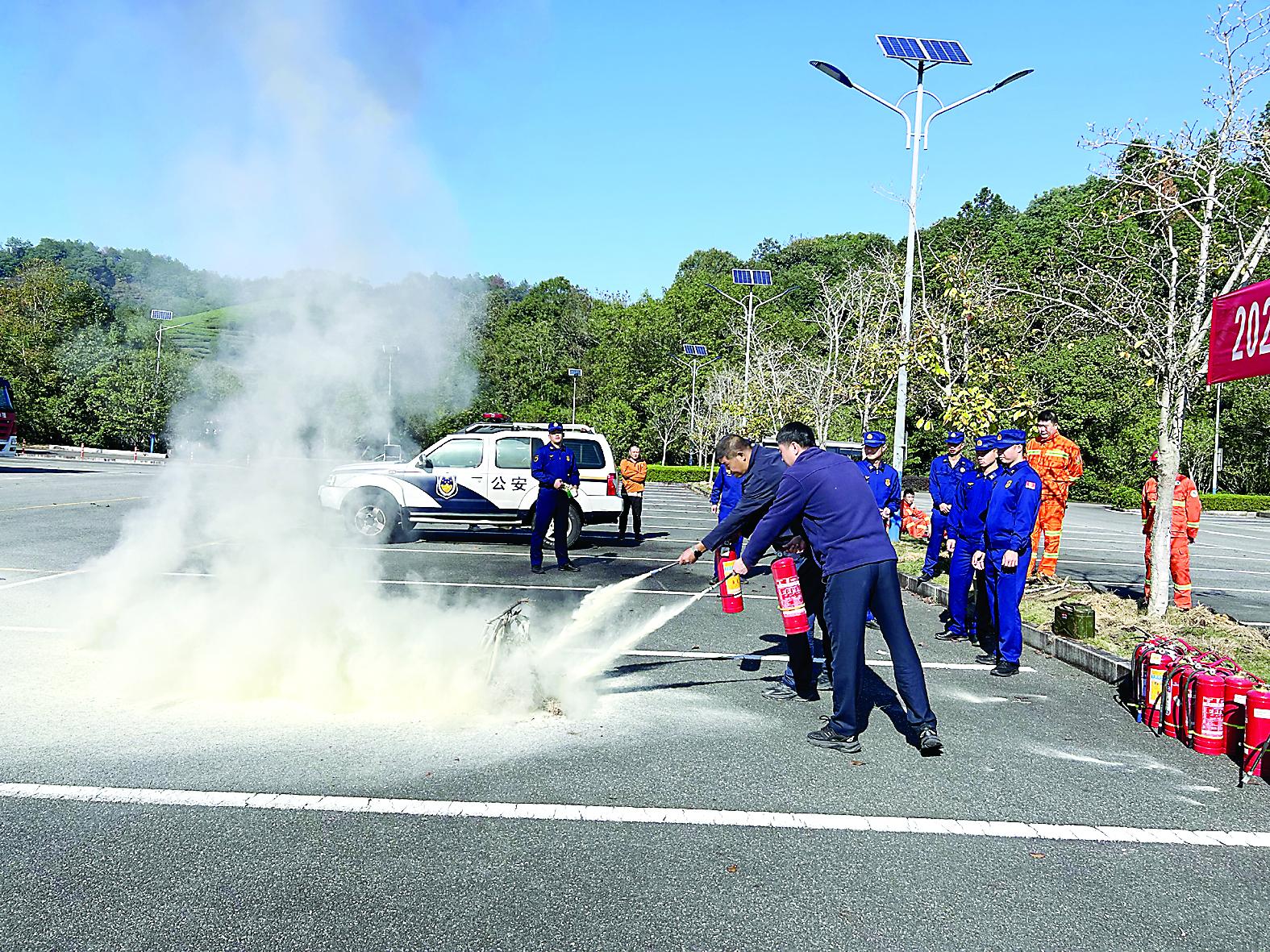 近日,武夷山文旅集團有限公司聯(lián)合武夷山國家公園管理局、市公安局、市消防救援大隊等多個單位,在武夷山景區(qū)南入口開展消防、反恐、游客疏散等安全生產(chǎn)綜合演練,提升武夷山景區(qū)應對突發(fā)事件的協(xié)同處置能力,切實保障游客安全與運營秩序。圖為參加演練人員正在進行消防滅火實操。