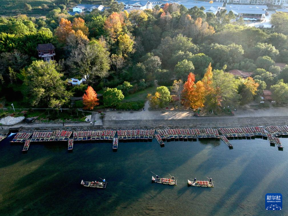 這是11月30日拍攝的福建武夷山九曲溪竹筏碼頭附近景色(無人機(jī)照片)。