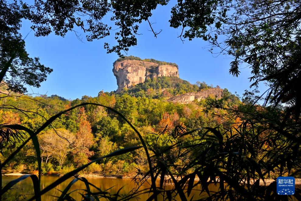 這是11月30日拍攝的福建武夷山九曲溪畔的大王峰。