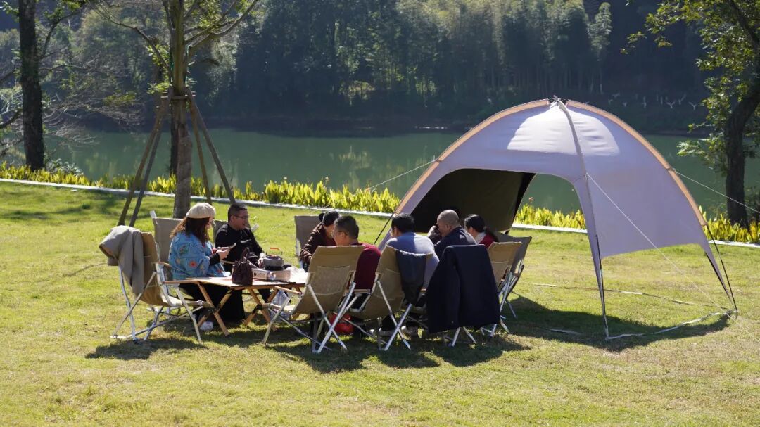 不遠(yuǎn)處的“躺坪”露營(yíng)地,以星空綠野重新定義自然度假,漫步水岸盡享野奢樂趣。露營(yíng)地旁的無(wú)邊泳池,更是游客必拍的“打卡勝地”?!斑@無(wú)邊泳池配著青山綠水,還有遠(yuǎn)處的青磚黛瓦,好出片??!”來(lái)自福州的游客林安福一邊拍照一邊贊嘆。