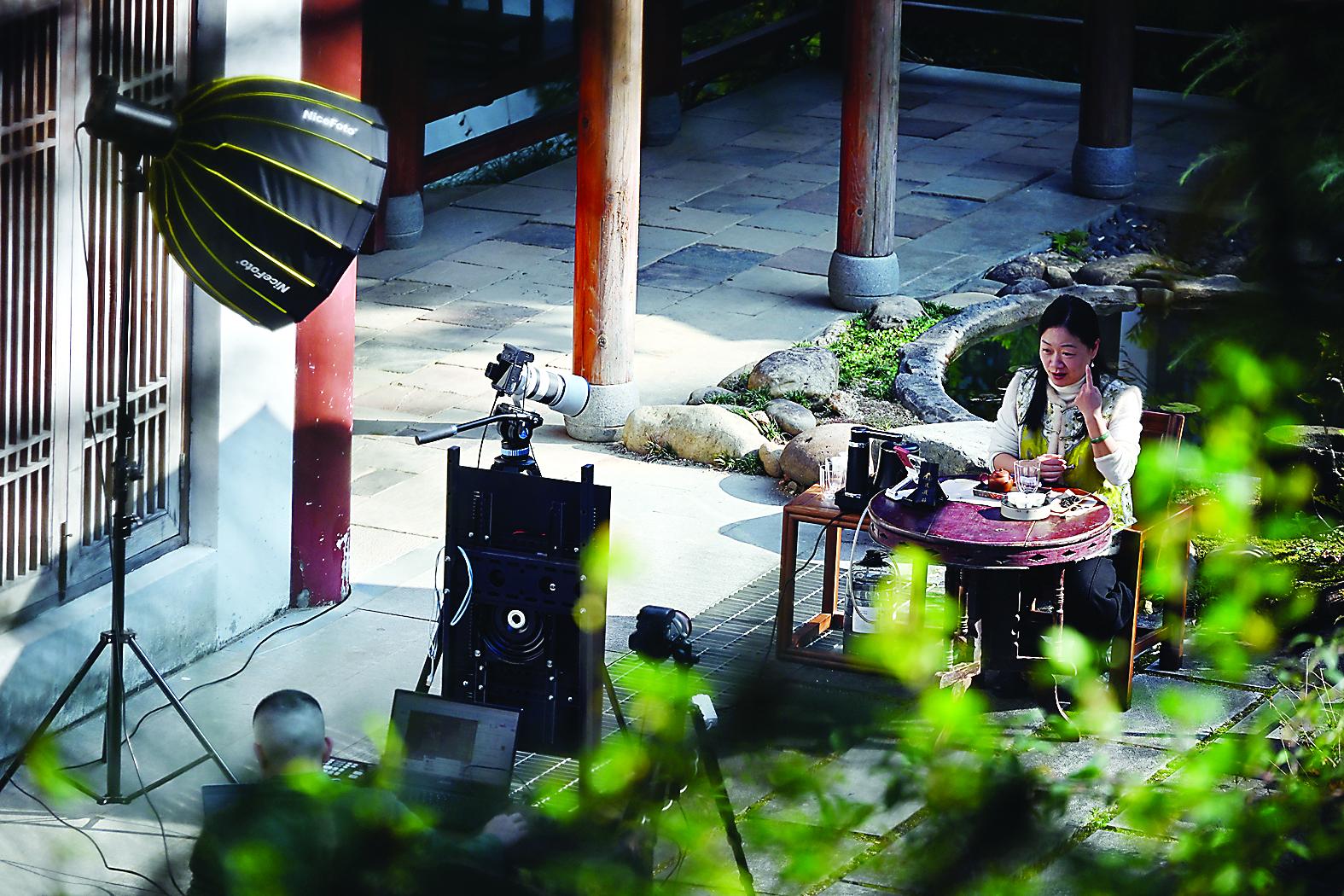 進(jìn)入冬季,武夷巖茶迎來(lái)新一波的銷(xiāo)售熱潮。武夷山許多茶企、茶人正借助電商直播平臺(tái),將武夷山深厚的茶文化和優(yōu)美的自然風(fēng)光展現(xiàn)給廣大網(wǎng)友。圖為近日,武夷山茶言精舍主理人葉燦在直播推介。 (吳建瓊 朱宇 攝)
