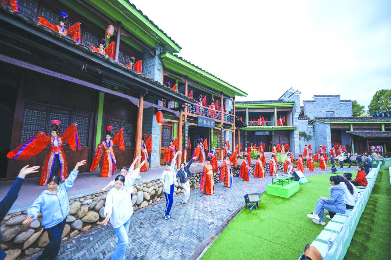 近期,印象大紅袍公司對水篩、紅竿、唐舞等表演環(huán)節(jié)進行提升,力求讓觀眾享受到更好的視聽體驗。圖為演員在排練唐舞。