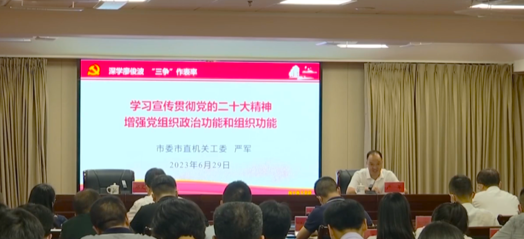 為深入學(xué)習(xí)宣傳貫徹黨的二十大精神,進(jìn)一步凝聚“深學(xué)爭(zhēng)優(yōu) 敢為爭(zhēng)先 實(shí)干爭(zhēng)效”思想共識(shí),提高機(jī)關(guān)黨的建設(shè)質(zhì)量。6月29日上午,市直機(jī)關(guān)工委舉辦“迎七一”黨的二十大精神宣講會(huì)暨黨務(wù)干部“業(yè)務(wù)大比武”活動(dòng),市直機(jī)關(guān)工委常務(wù)副書記嚴(yán)軍上《學(xué)習(xí)宣傳貫徹黨的二十大精神 增強(qiáng)黨組織政治功能和組織功能》專題黨課。市直機(jī)關(guān)專職黨務(wù)干部及市直機(jī)關(guān)工委全體干部參加會(huì)議。