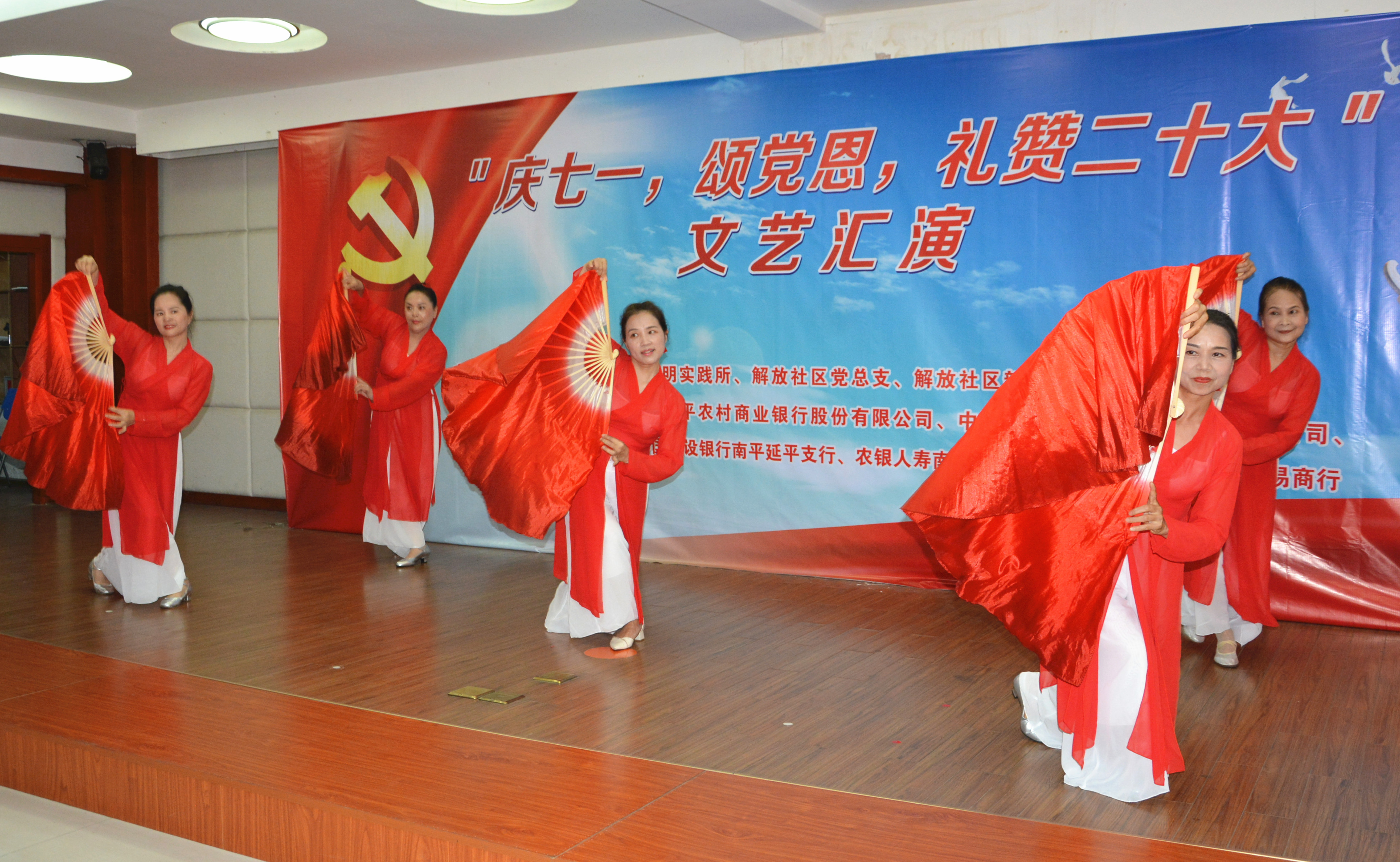 為慶祝中國共產(chǎn)黨成立102周年,響應市委深入學習廖俊波優(yōu)秀品質(zhì)的號召,6月30日延平區(qū)梅山街道新時代文明實踐所、解放社區(qū)黨總支、解放社區(qū)新時代文明實踐站協(xié)同轄區(qū)單位在閩北日報社舉辦以“慶七一,頌黨恩, 禮贊二十大”為主題的文藝匯演活動,感恩革命先輩,傳承紅色基因。 (劉美華 攝)