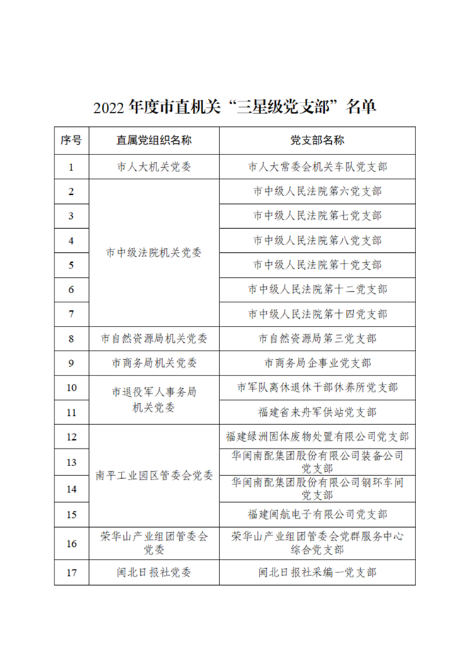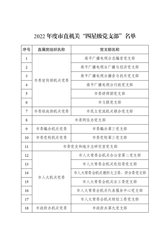 2022年度南平市直機關(guān)星級黨支部名單公布