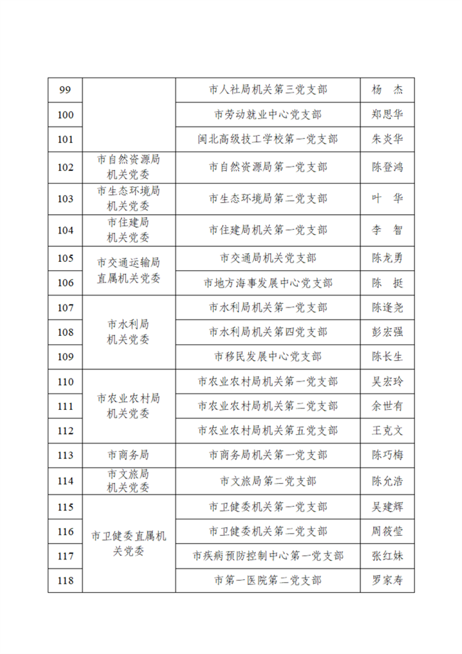 根據(jù)《中共南平市委市直機關(guān)工委關(guān)于開展2022年度市直機關(guān)基層黨組織全面“黨建體檢”暨星級黨支部評選工作的通知》精神,在市直機關(guān)基層黨支部自評申報、機關(guān)黨委(黨總支)復(fù)評推薦基礎(chǔ)上,經(jīng)市直機關(guān)工委復(fù)核綜評,決定命名2022年度市直機關(guān)星級黨支部575個,其中“五星級黨支部”208個、“四星級黨支部” 336個、“三星級黨支部”31個。具體星級黨支部名單如下: