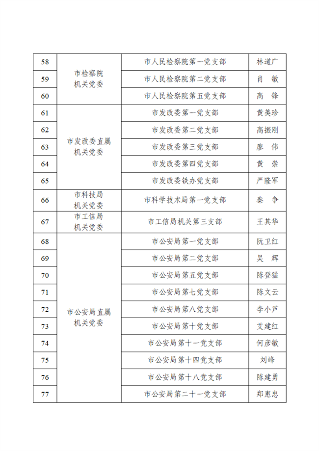 市直機關(guān)四星級黨支部名單