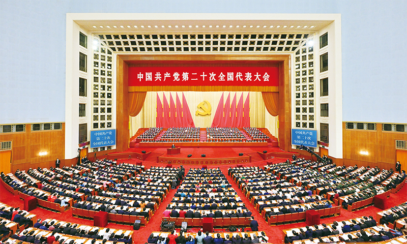黨的二十大提出開辟馬克思主義中國化時代化新境界的重大任務,強調這是當代中國共產黨人的莊嚴歷史責任。圖為2022年10月16日,中國共產黨第二十次全國代表大會在北京人民大會堂開幕。 新華社記者 岳月偉/攝